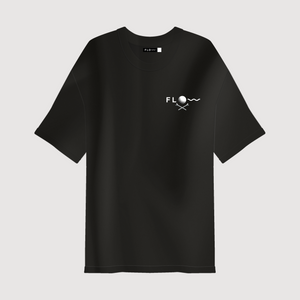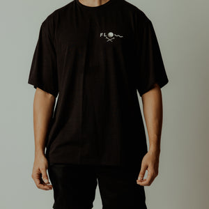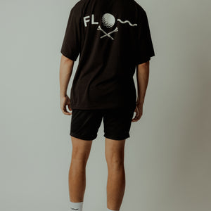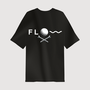 Muestra tu FLOW en el juego con esta camiseta negra de golf con el logotipo "FLOW" impreso en la parte delantera y trasera.