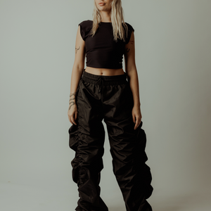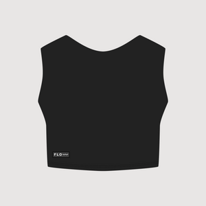 Presentamos nuestra primera versión de nuestro top corto con espalda abierta en color negro. Este FLOW es esencial para cualquier ocasión.